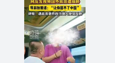 在泰国威胁中国游客的导游已被捕“不消费就回不了中国”、“过了免税店就上不了大巴”等。该网友还指着视频,要求“删除视频”。[color=rgba(0, 0, 0, 0.9)]在泰国威胁中国游客的导游已被捕“不消费就回不了中国”、“过了免税店就上不了大巴”等。该网友还指着视频,要求“删除视频”。https://mp.weixin.qq.com/s/yNXt-4LuUNziVS21OgSRvQ 在泰国威胁中国游客的导游已被捕 [color=rgba(0, 0, 0, 0.9)]在泰国威胁中国游客的导游已被捕 [color=rgba(0, 0, 0, 0.9)]10月13日,一名网友发布视频,声称自己在泰国旅游期间被强迫消费。该导游态度傲慢,用中文威胁游客,“不消费就回不了中国”、“过了免税店就上不了大巴”等。该网友还指着视频,要求“删除视频”。